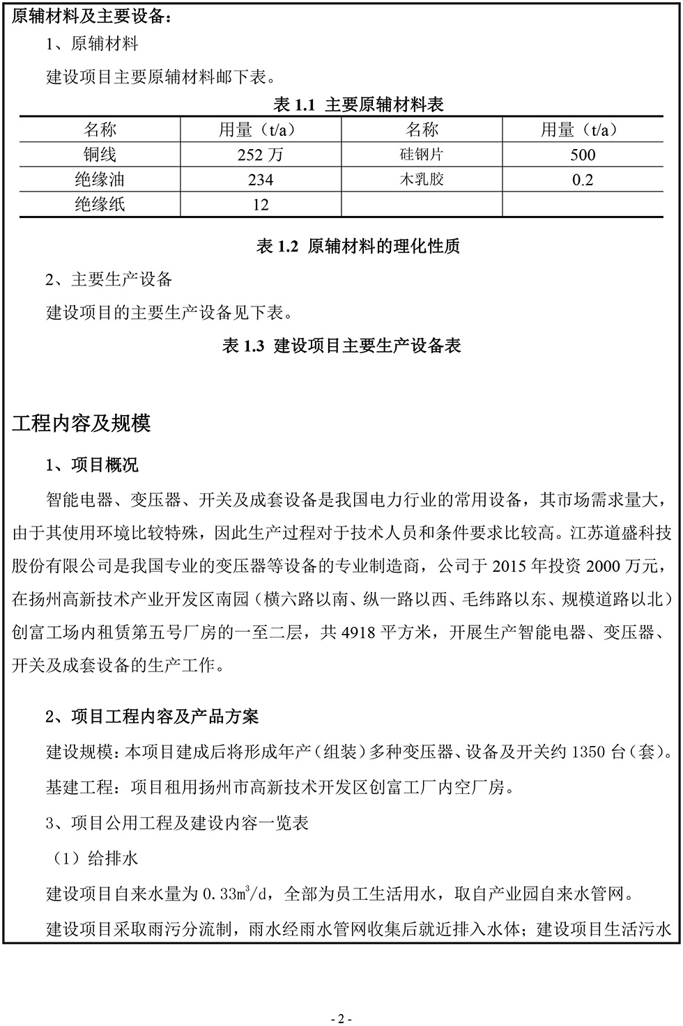江蘇道盛科技股份有限公司 智能電器、變壓器、開關(guān)及成套設(shè)備生產(chǎn)項目報告表(公示版)